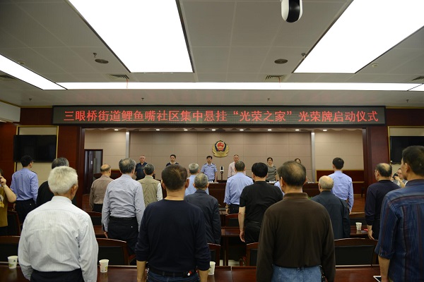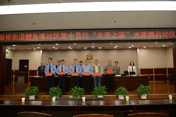 为弘扬拥军优属优良传统,传递在以习近平新时代中国特色社会主义思想指引下,党和政府对现役和退役军人的关爱,近日,在岳阳市公安局指挥中心大楼会议室,隆重举行三眼桥街道鲤鱼嘴社区集中悬挂“光荣之家”光荣牌启动仪式。市局党委委员、政治部主任欧阳德儒,岳阳楼区退役军人事务管理局、三眼桥街道及鲤鱼嘴社区等相关同志为现场退役军人代表授“光荣之家”荣誉牌匾。市局在鲤鱼嘴社区有效登记的在职、退休退役军人民警60余人参加仪式。