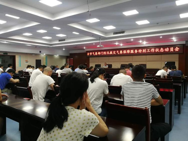 7月13日下午,岳阳市气象局召开全局干部职工大会,对当前防汛救灾气象服务工作进行再动员再部署。