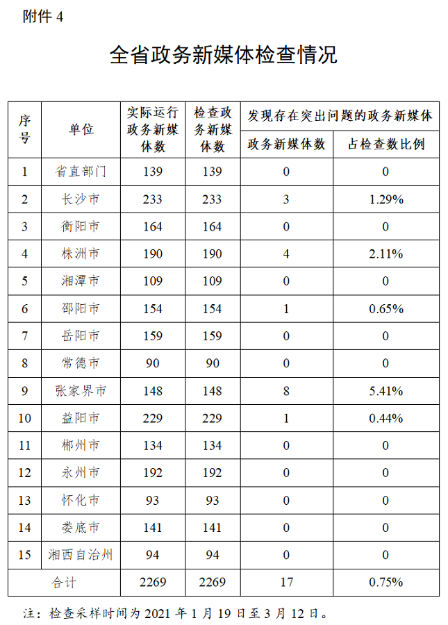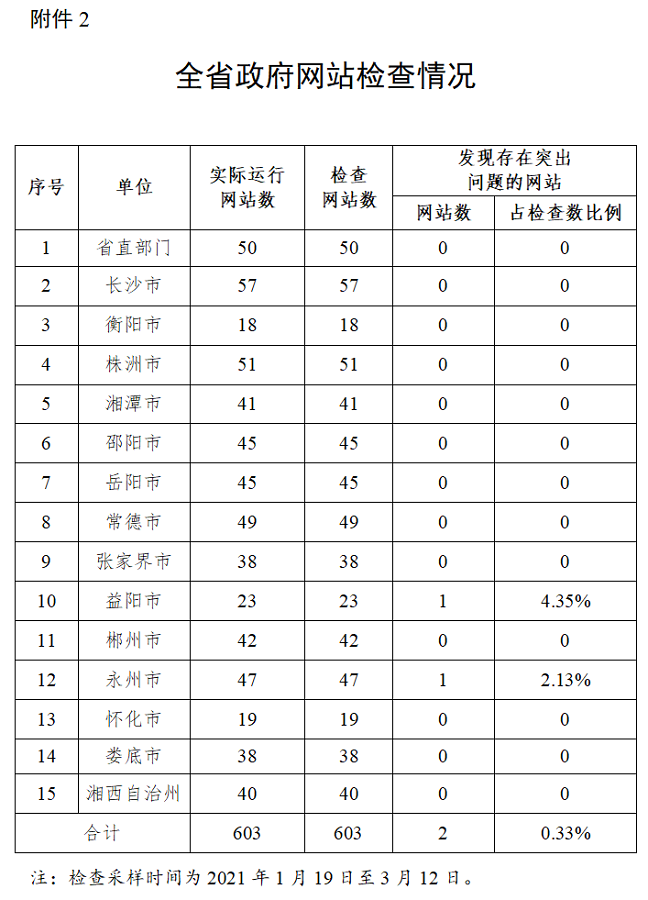 湖南省政务管理服务局关于2021年第一季度全省政府网站与政务新媒体检查情况的通报