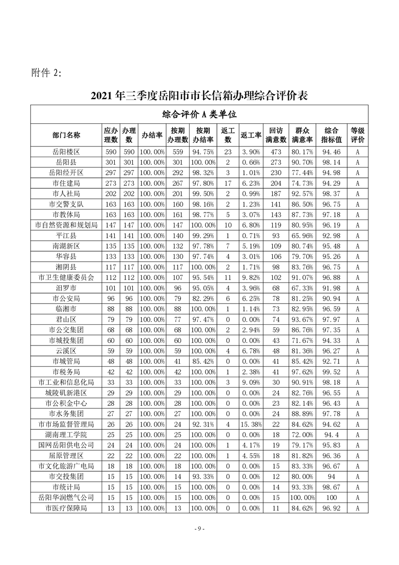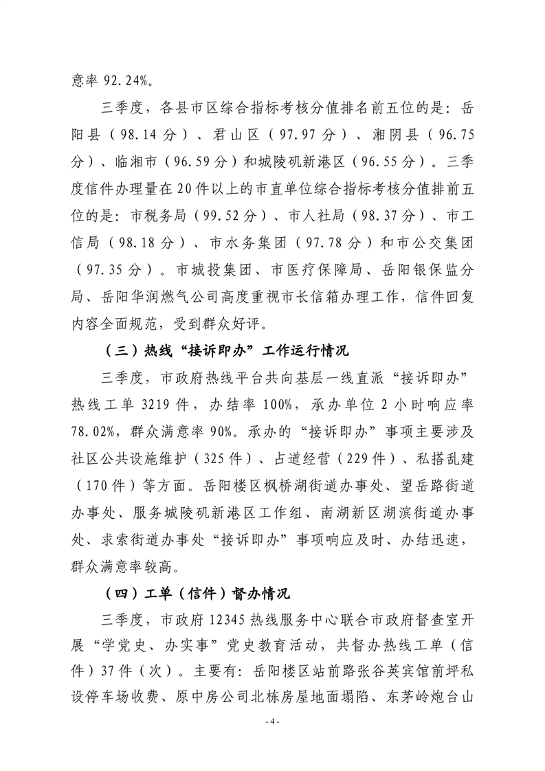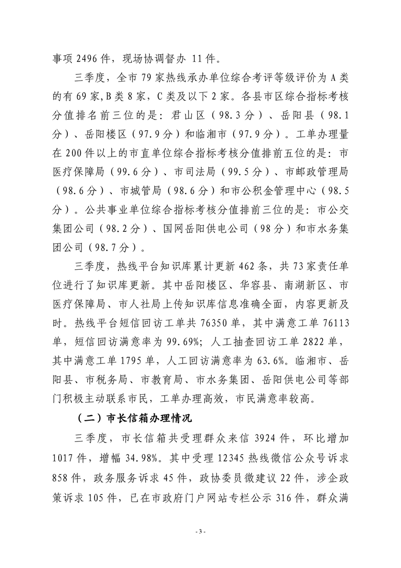 2021年三季度12345热线和市长信箱运行办理情况通报