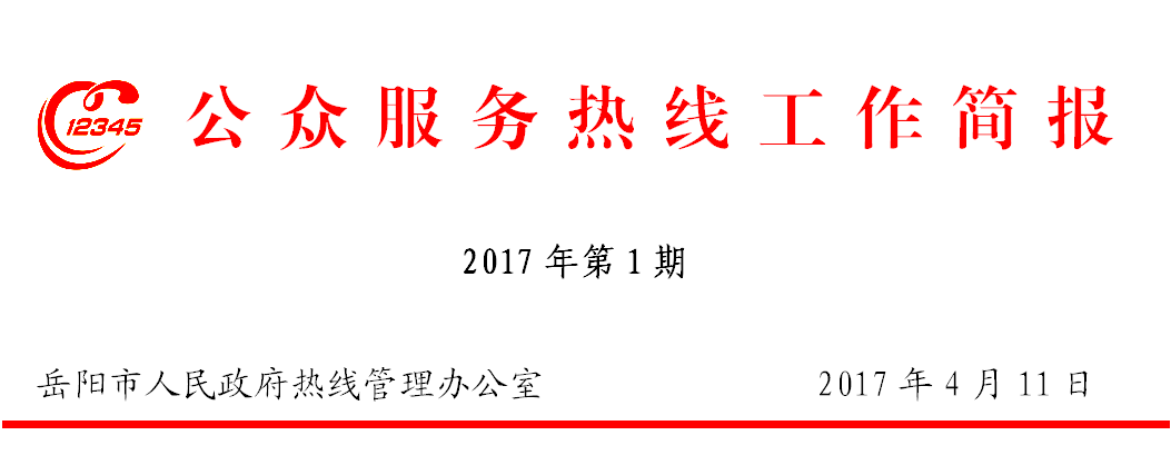 2017年一季度岳阳市12345公众服务热线综合评价情况