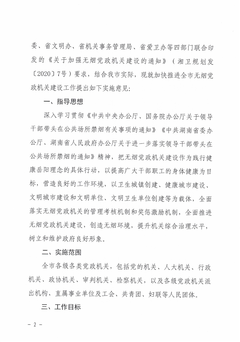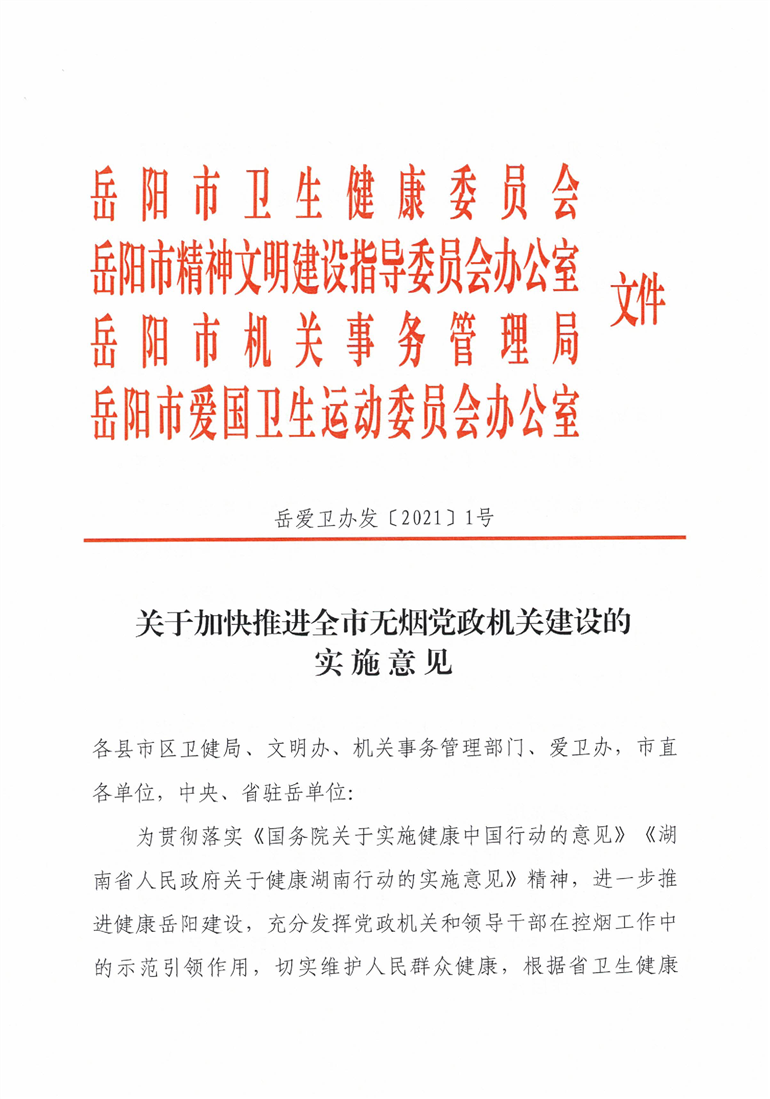关于加快推进全市无烟党政机关建设的实施意见