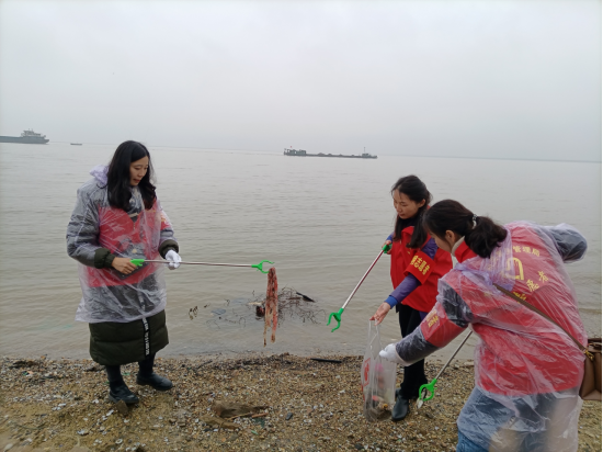 在洞庭湖沿岸,10多名志愿者自发参与“守护一江碧水.净滩行动”志愿活动,冒雨在沿湖沿江边收捡垃圾、清理杂草,改善沿江环湖地区生态环境,以实际行动践行习近平总书记“守护好一江碧水”的重要指示精神。