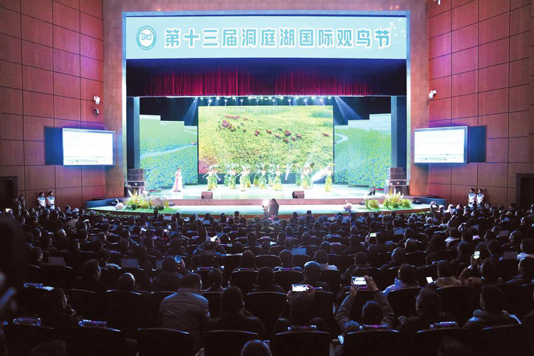 开幕式上,播放了“观鸟胜地 ‘羽’你有约”宣传片、麋鹿放归大自然短片,现场连线直播了采桑湖、东古湖候鸟,宣读了爱鸟护鸟倡议书,并举行了文艺展演。
