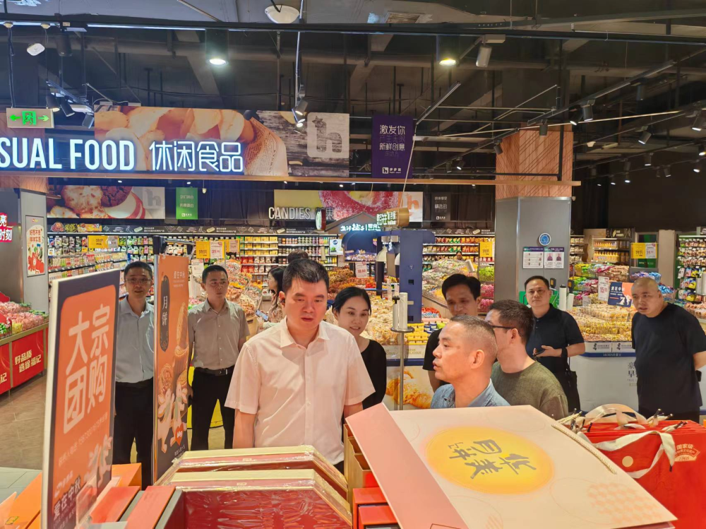 9月14日下午,市商务局党组书记、局长潘宏军带队督查我市中心城区商贸流通领域安全生产、文明城市创建及中秋、国庆“两节”期间生活必需品供应情况,重点检查了步步高新天地、东茅岭菜市场等经营单位基础设施建设、商户经营现状、日常管理、宣传氛围、环境卫生等情况。岳阳楼区商务局部门负责同志、局相关科室负责人参加。
