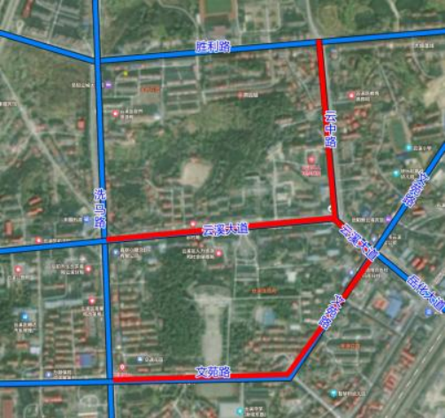 2.云溪区:云溪大道(G107立交桥连接处至云中北路连接处)、云中北路、文苑路(从与云溪大道交叉路口至洗马路交叉路口)。