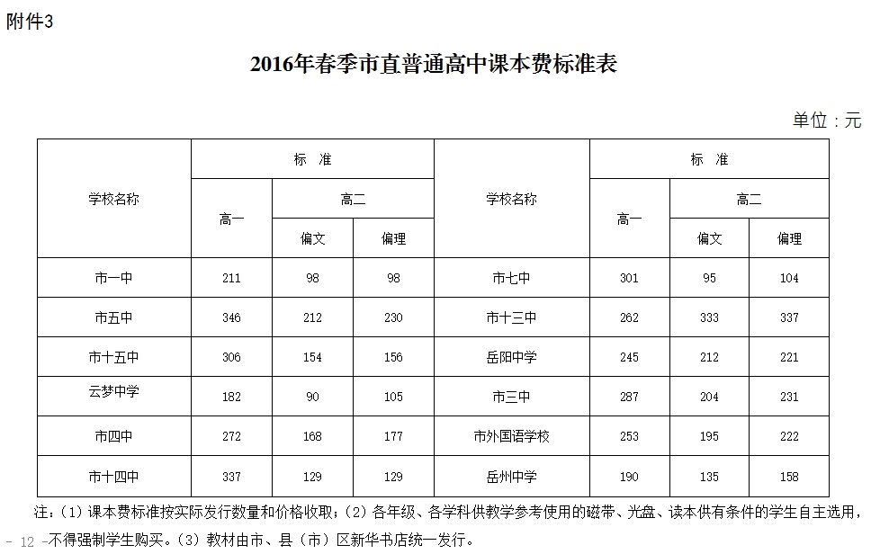 2、高中阶段课本费和作业本费。各县(市)区高中课本费委托当地价格、财政、教育行政主管部门严格按照省教育厅颁发的高中用书目录、当地实际征订的版本和省发改委下达的价格分校从实核定,报市发改委、市财政局、市教体局备案。市直高中课本费见附件三,作业本费见附件二。
