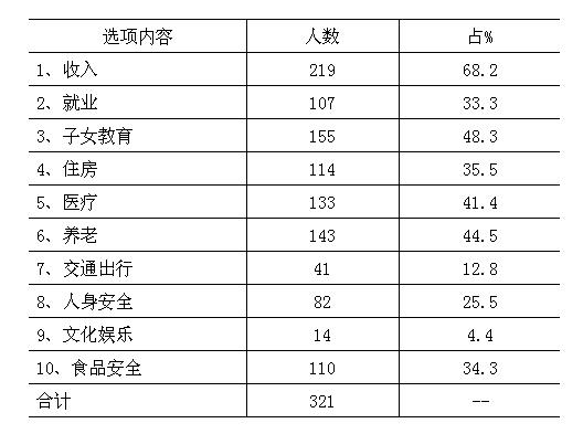 5、家庭收入仍是居民最关心的问题。