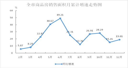 2016年,全年全市实现商品房销售面积534.17万平方米,同比增长19.0%,成交金额215.24亿元,同比增长22.4%。其中:住宅销售面积476.66万平方米,增长21.6%,办公楼销售面积下降91.5%,商业营业用房销售面积增长24.6%。商品房销售额215.24亿元,增长22.4%,其中:住宅销售额增长25.5%,办公楼销售额下降88.1%,商业营业用房销售额增长15.6%。