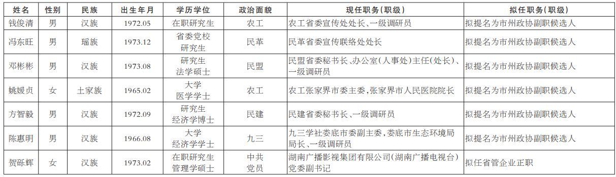 为了加强对干部选拔工作的监督,提高识别和任用干部的准确程度,现对省委常委会会议研究决定的下列拟任人选进行任前公示: