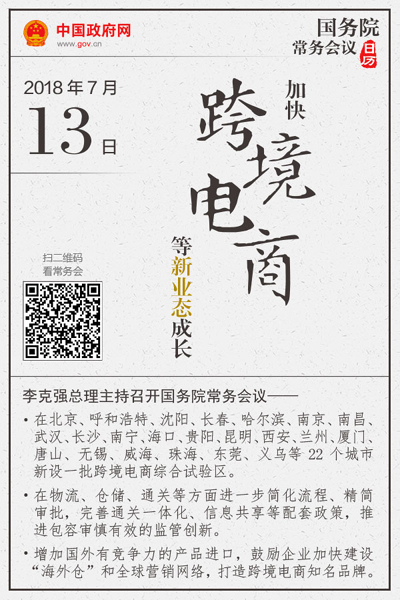 “加快发展跨境电商,不仅有利于更好满足群众消费升级和国内发展需要,而且有利于稳定外贸进出口。”李克强总理在7月13日的国务院常务会议上说,“要抓住这一外贸新增长点,进一步总结好经验、好做法向全国复制推广。”
