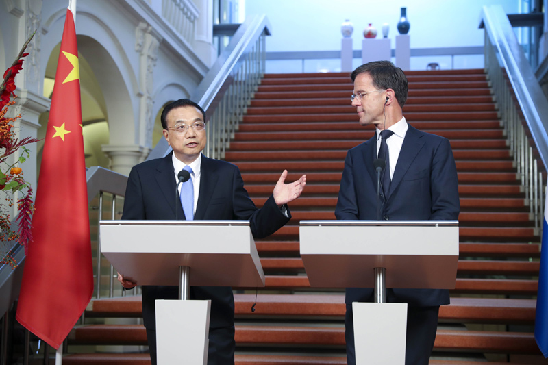 “中方愿与荷方共同表明我们维护多边主义和自由贸易的立场,协商讨论完善多边贸易体制,携手应对当前世界遇到的单边主义挑战。”李克强总理说。