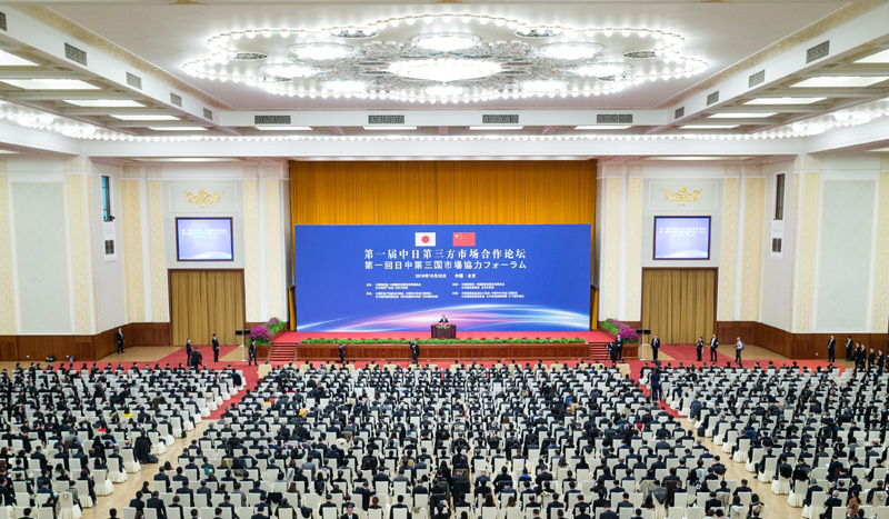 国务院总理李克强10月26日上午在人民大会堂与日本首相安倍晋三共同出席第一届中日第三方市场合作论坛并致辞。