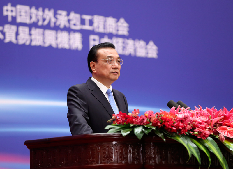 李克强表示,务实合作是中日关系的“压舱石”和“推进器”。“中日两国在第三方市场的合作,会给中日合作带来更广阔的空间;两国更深入、密切的双边合作,也会拓展第三方市场合作的更大潜力。”