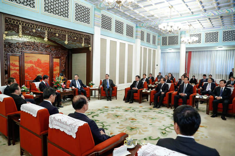 4月15日上午,李克强总理在中南海紫光阁会见出席第五次中日经济高层对话的日本外相河野太郎以及部分日本政府内阁成员。这一高层对话在去年4月重启之前,一度中断了8年。