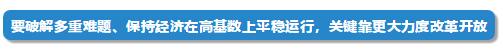 李克强说,要破解多重难题、保持经济在高基数上平稳运行,关键靠更大力度改革开放。扎实落实“放管服”改革新任务,打造市场化法治化国际化营商环境。更加主动扩大开放,实施好准入前国民待遇加负面清单管理等制度,培植一视同仁、更具吸引力的投资热土。企业要勇于创新和到国际市场竞争。大企业要带动配套小企业共同发展。创造有利条件,催生更多“独角兽企业”、“瞪羚企业”、新领军者企业,加快新动能培育和新旧动能转换。