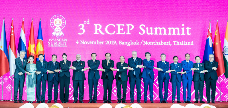 当天会后发表的联合声明宣布:RCEP在为强有力的多边贸易体制提供支持、促进区域内各经济体发展的同时,将显著增强本地区的未来发展前景,为全球经济作出积极贡献。