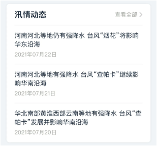 点开“自然灾害预警”、“气象灾害预警”以及“台风告警”,恶劣天气早知道、提前做好防备!
