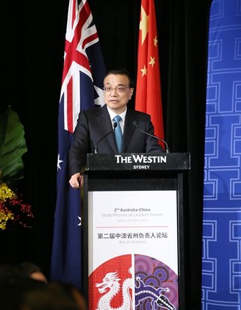 李克强随后致辞中邀请澳大利亚省州负责人抓住机遇,到中国、到中西部,在科技、教育、新经济等领域寻找共同商机,同时加深两国人文交流,拉近两国人民心灵的距离。