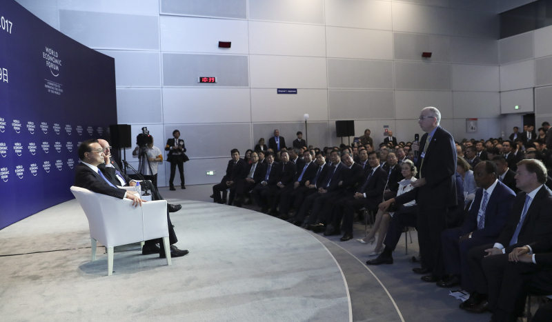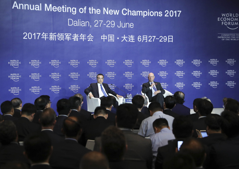 【李克强:中国实施“互联网+”是面向全球的】李克强总理28日会见2017大连夏季达沃斯论坛企业家代表时说,中国实施的“互联网+”是面向全球的。很多云平台吸纳外国企业个人注册,基础电信和增值方面对外资开放力度也是发展中国家水平最高的。中国政府会采取包容审慎的监管方式,坚决打击网络欺诈、售假等行为,让外企和中国企业共同发展。