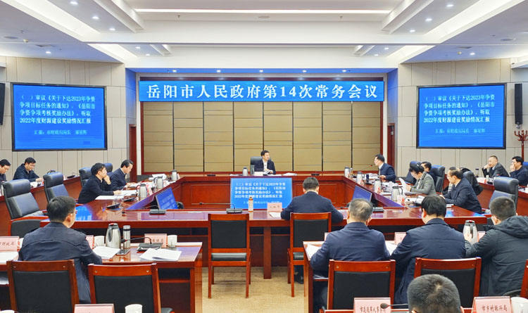 会议审议并原则通过了《关于下达2023年争资争项目标任务的通知》和《岳阳市争资争项考核奖励办法》,听取了2022年度财源建设奖励情况汇报,强调各级各部门单位要进一步坚定信心,主动认领任务,加强督导调度,严格兑现奖优罚劣,强化考核结果运用,全力以赴确保坚决完成既定任务。