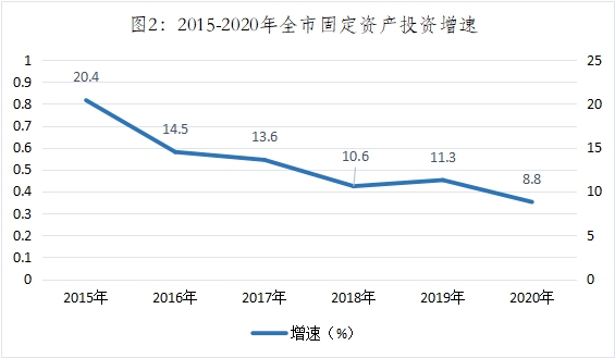 全市固定资产投资比上年增长8.8%,其中:第一产业投资增长30.6%;第二产业投资增长10.4%;第三产业投资增长6.6%。分经济类型看,国有投资下降24.5%,非国有投资增长27.5%,民间投资增长14.4%;分投资方向看,工业投资增长9.2%,民生投资下降22.7%,生态投资下降5.8%,基础设施投资增长6.9%,高新技术产业投资增长11.3%。