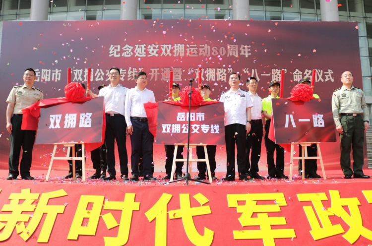 本报讯(记者 赵 芸)5月18日上午,我市“双拥公交专线”开通暨“双拥路”“八一路”命名仪式在会展中心举行。岳阳军分区政委司开明宣布“双拥公交专线”正式开通,“双拥路”“八一路”正式命名。副市长、市公安局局长李劲松为“双拥公交专线”揭牌。市退役军人事务局、市民政局、市国资委、市公交集团主要负责人;驻岳部队、张超民兵先锋连、巴陵先锋退役军人志愿服务队等代表共270人参加仪式。