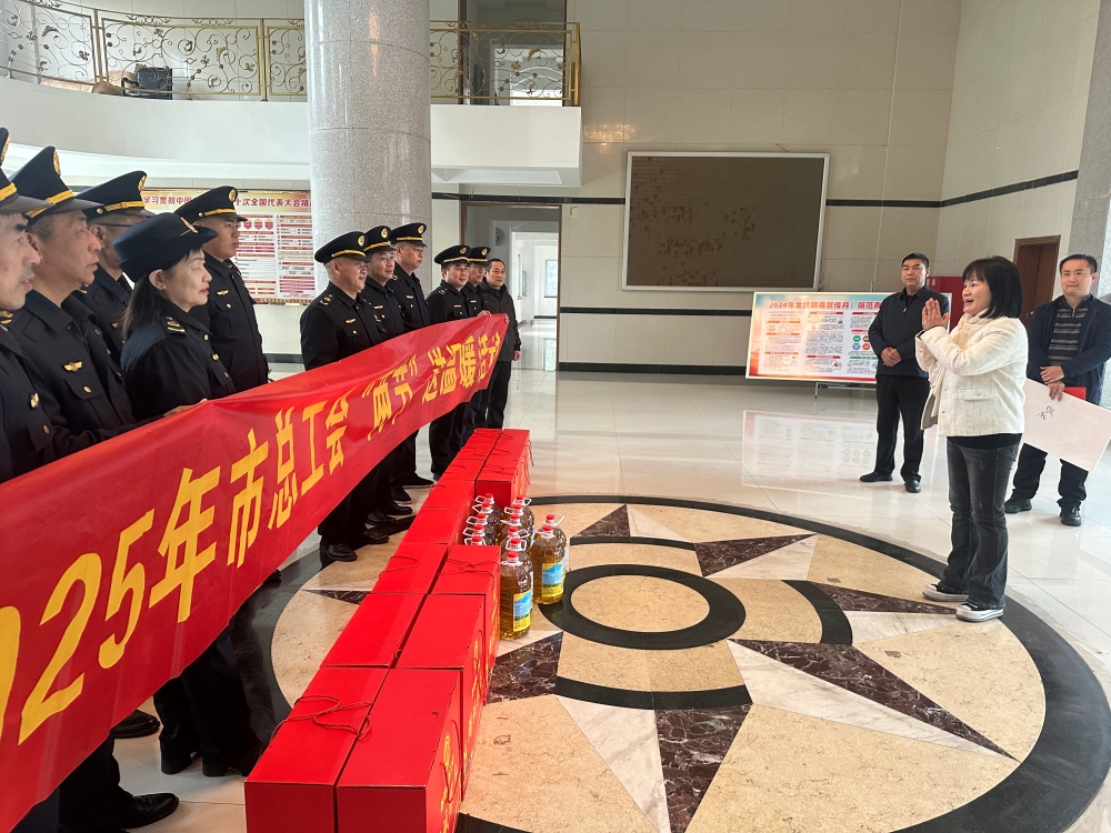 新春将至,岁寒情深。1月23日,市总工会党组成员、副主席唐慧一行到市交通运输综合行政执法支队开展春节送温暖活动,走访慰问市交通运输行业一线执法人员、困难职工及劳模、工匠代表,为一线执法人员送上慰问物资,向他们致以最亲切的问候和新春祝福。局一级调研员、市交通运输工会主席熊少先参加。