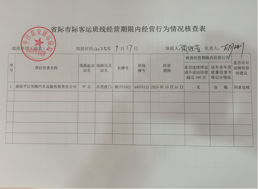 关于湖南平江华腾汽车运输有限责任公司东莞班线延续经营的公示