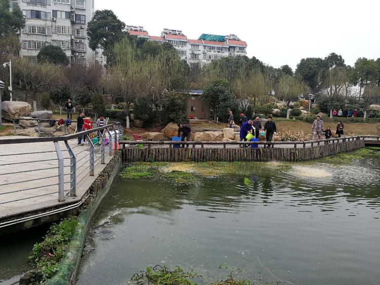 2月28日,岳阳市污水处理管理处接到市住房和城乡建设局指令,迅速组织专业人员成立治污应急分队,并立即进入现场采取多措并举、循环作业的方式,一是对水面飘浮物打捞清理,二是对污水管道进行机械吸泥疏通,三是对水岸沿线拨撒石灰和生物除臭剂进行消毒和除异味,四是向黑臭水体投放聚合氯化铝、聚丙烯酰胺等药剂净化水体。通过上述方法的治理,目前臭气异味锐减,黑水颜色逐渐变清,臭水体现象得到初步控制。