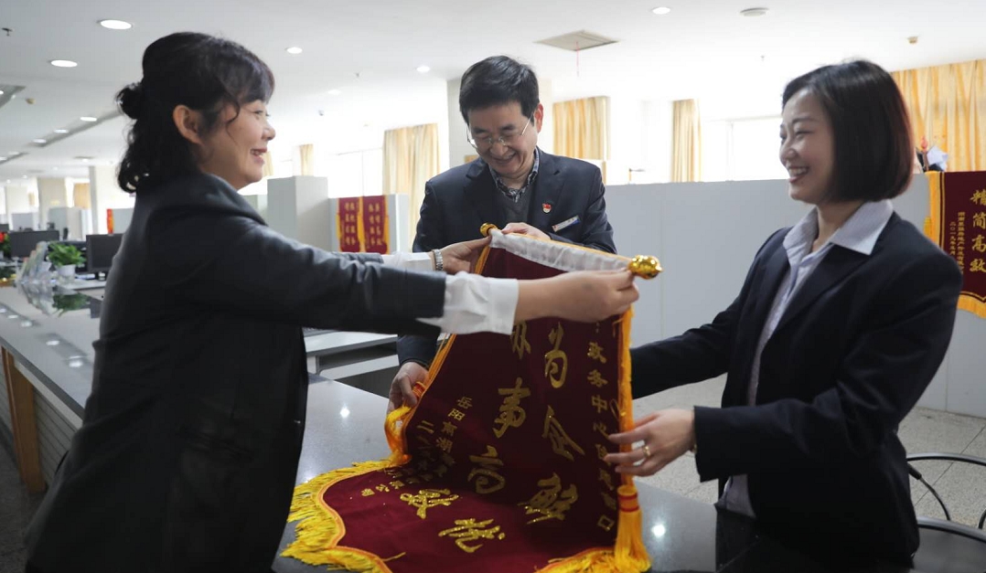 于是,3月19日,邓瑜又专程来到了市政务中心住建窗口赠送锦旗,出现了文中开头第一幕。