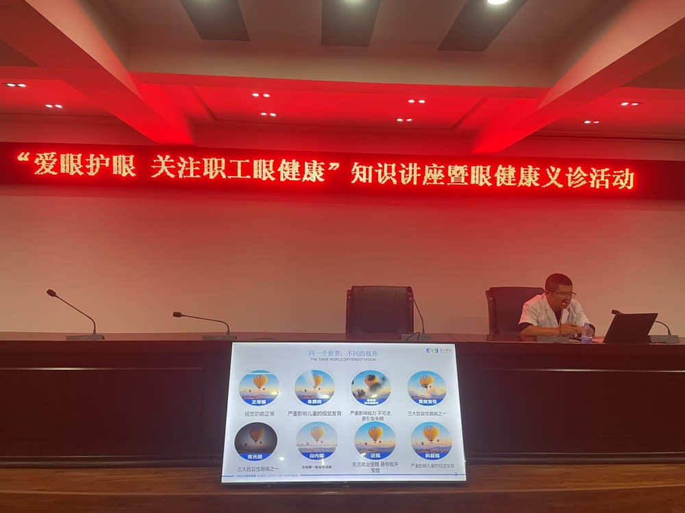 随后,岳阳爱尔眼科医院眼科专家刘晨为大家带来了一场干货满满的护眼讲座。针对大家长期户外作业、频繁使用电子设备的特点,刘晨深入浅出地讲解了干眼症预防、蓝光危害、科学用眼习惯及常见眼疾早期信号识别等实用知识,生动讲解和互动让在场女职工频频点头,深感实用。眼健康公益义诊环节,岳阳爱尔眼科医院医护人员携带专业设备,为女职工们提供了干眼熏蒸、电脑验光、裂隙灯检查、眼底初步筛查及电脑验光、科普讲解等多项服务。