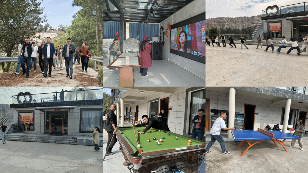 在洛家洞生态农庄,大家选择台球、乒乓球、羽毛球等各自喜欢的运动项目,在丰富多彩的体育运动中互相交流感情,用力挥动球拍、球杆,尽情挥洒青春和激情。