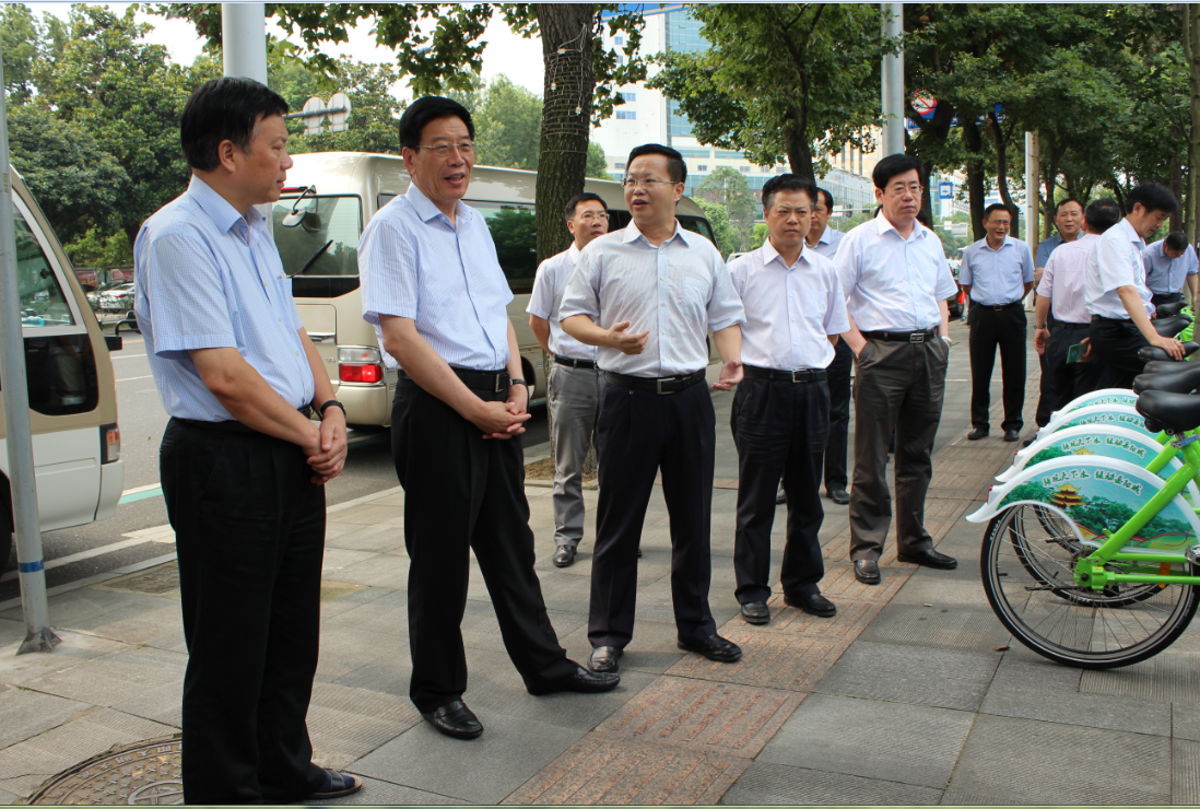 24日下午,徐守盛第一站来到市图书馆自行车租赁点,饶有兴趣地骑上自行车亲身体验。在现场听取市城管局局长陈阁辉对我市公共自行车租赁系统的相关介绍后,他说,要鼓励机关干部带头骑自行车,带领广大群众绿色、低碳出行;要进一步加强配套服务,把好事办好。今年5月1日,我市公共自行车租赁系统正式运行,5000辆公共自行车遍布全市210个站点,既方便了市民出行,也成为城市一景。