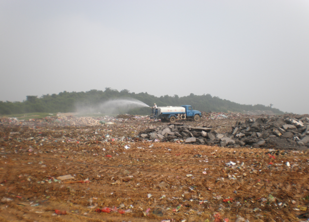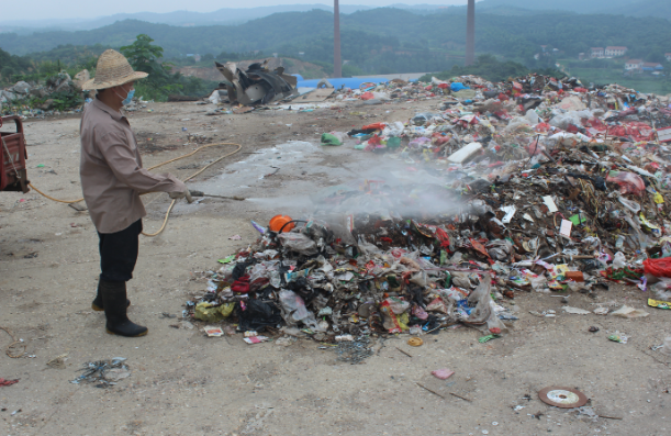 时值瓜果、鱼虾等消费高峰,生活垃圾中有机物含量高且易发酵发臭,蚊子、苍蝇等害虫滋生高峰期来临,为维护场内及周边环境,我市花果畈垃圾处理场适时组织开展了以除臭灭蝇为重点的环境整治活动。采用低毒高效生物制剂,采取局部重点用药与场区普洒相结合的方式,防消结合开展除臭灭蝇工作,图为消杀员正在喷洒除臭灭蝇药剂。