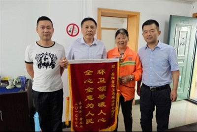 本报讯(张颉 李志敏)近日,环卫工人黄美玉捧着一面鲜红的锦旗来到市环卫局城南清扫保洁所,对该所全力维护职工尊严和权益的行为表示感谢。