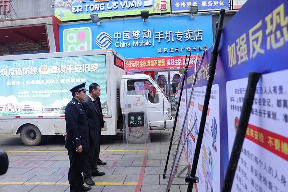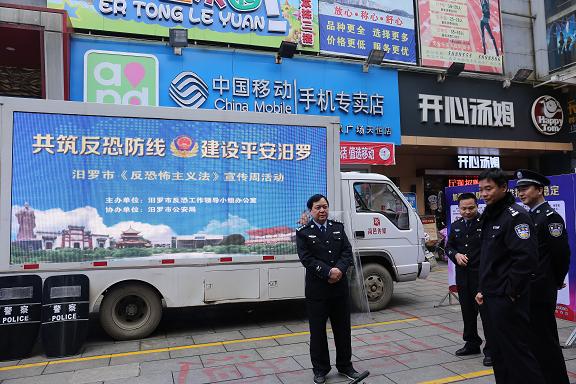 宣传活动主会场设在汨罗市天恒大型超市门前广场,市反恐办通过反恐知识展板布置、反恐防恐器械展示、悬挂宣传横幅、出动视频宣传车播放宣传视频、发放宣传资料、现场讲解等形式向群众宣传反恐防恐知识,增强对恐怖主义活动的认识,提升反恐防恐意识和应急自救互救技能。