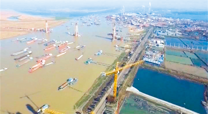 高峰期长江“三江口”水域密密麻麻的运砂船
