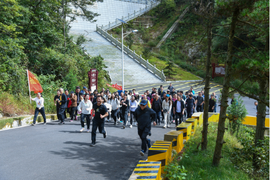 在幕阜山的怡人风光中,大家亲近自然,感受秋色,沐浴着和煦的阳光;志愿者们擎着彩旗,拉着横幅,兴趣盎然,一路观景,一路说笑,一路用手机记录着这难得的好时光,分享着工作之余大自然带来的那份轻松与惬意。摄影组的同志们则不忘捕捉精彩的瞬间快乐的场景,将这美好的画面一一定格。“空山新雨后,天气晚来秋”。今年的秋天,对于岳阳市水利局全体同仁来说,似乎到得特别晚。可能是今年汛期长任务重的缘故,全局人员一直奋斗在防汛抗灾各个战场。不知不觉秋分已至,有同事还发出了“未觉池塘春草梦,阶前梧叶已秋声”的感慨。