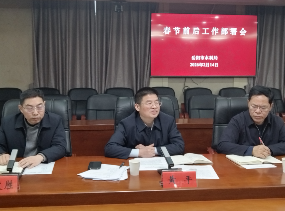 2月14日,岳阳市水利局党组书记、局长提名人选黄平主持召开春节前后工作部署会议,对岁末年初各项重点工作进行再部署、再强调。局领导班子成员、调研员,各科室单位负责人参加会议。