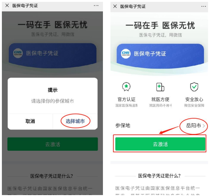 即日起,我市医保参保人可通过“湘医保”(湖南省医疗保障局官方微信)公众号,或关注岳阳市医疗保障局官方微信公众号,在“政策查询”栏目中的“湘医保”,激活自己的医保电子凭证。