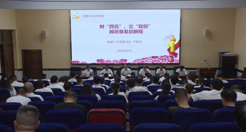 6月30日晚,市二中举行庆祝中国共产党成立101周年表彰大会暨“光荣在党50周年”纪念章颁发仪式。