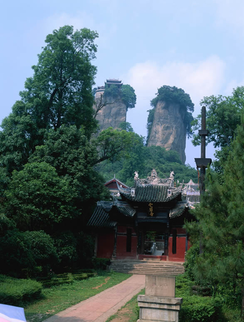 祖师殿:俗称正殿、石通判殿。位于大云山东部顶峰,海拔909米。始建于唐代,供真武大帝、石光祖师。前后曾8次重修,最后毁于文革1966年。1993年恢复祖师殿系统工程,规划从土地堂向上,依次为“雄峙楚天”牌楼、灵官殿、祖师殿、玉皇殿、三清殿和望江亭等建筑。此系统1998年全部竣工。