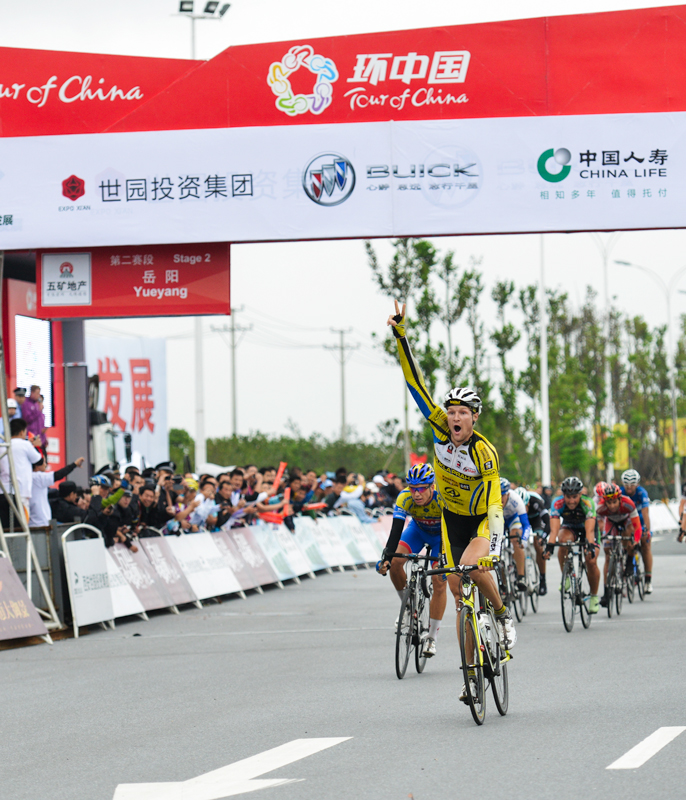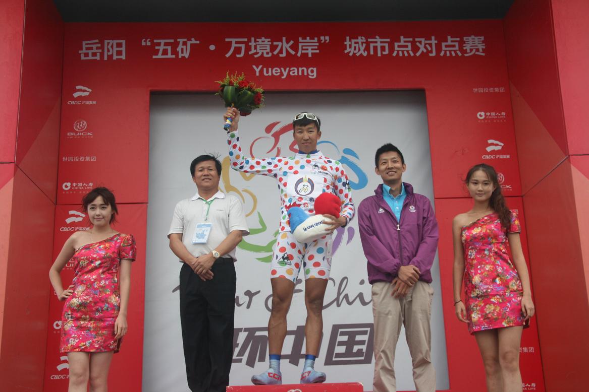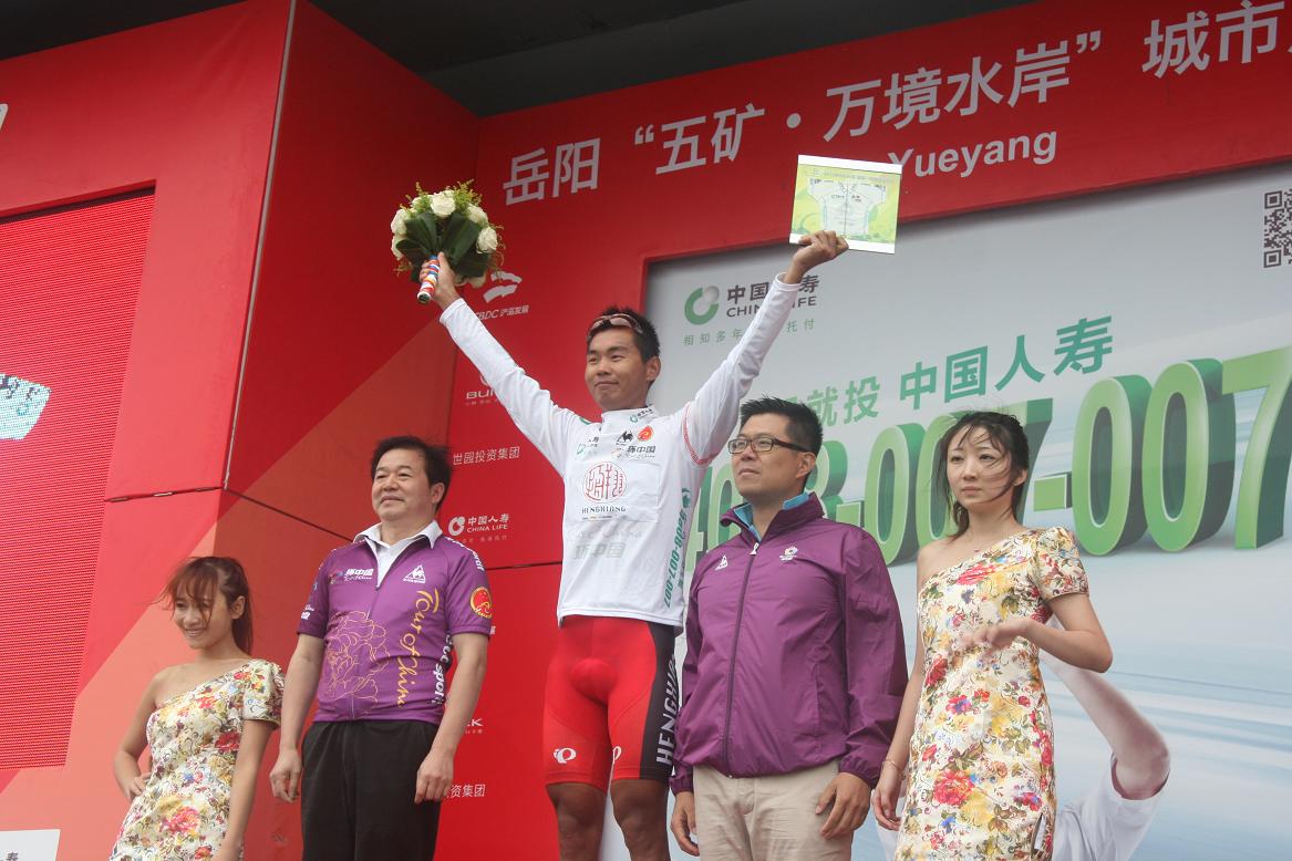 恒祥队的王美银是中国最优秀自行车选手之一。在岳阳站,他不负众望赢得大中华白衫。
