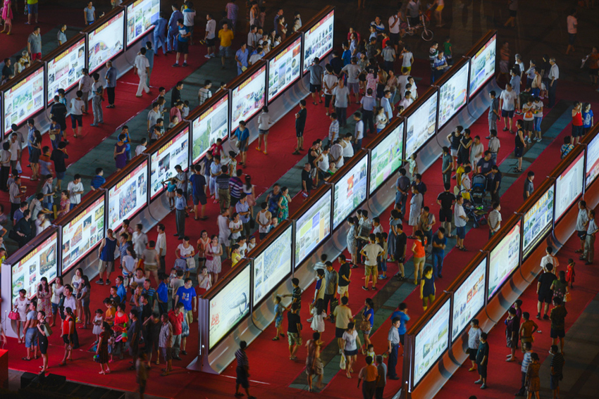 8月27日晚上,岳阳市南湖广场灯光璀璨、歌舞飞扬,一曲《梦想屈原》,恢宏的音乐,震人心弦的鼓点,拉开了“欢乐潇湘·幸福岳阳·梦想屈原”的专场演出。南湖广场大型图片展《我们走过30年》,岳阳摄影人用镜头记录了岳阳市建市30周年来的腾飞变化,吸引了很多市民观看。