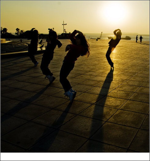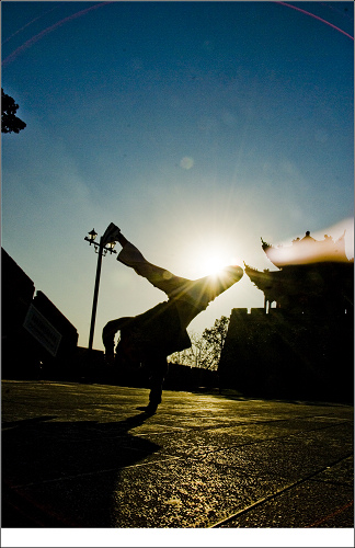2009年11月2日,岳阳楼汴河街一群装束前卫的年轻人在这里跳得正欢,音响里的热力节拍撩人心弦,一位年轻妈妈牵着一个只有几岁的小男孩站在一旁看得入神,音乐热舞的感染力直逗得小男孩笑咧咧地蹬腿摇身, “这个叫街舞。”小男孩的小手一指,认真的向一旁的记者“介绍”说。