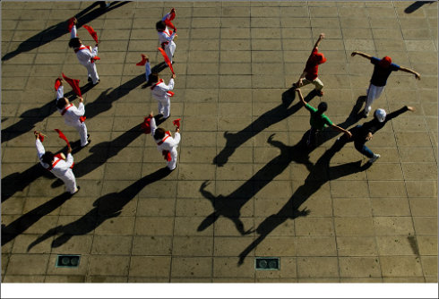 传统腰鼓与街舞的比拼
