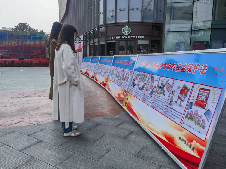 花板桥步步高广场是城市中心,人口流动量大。当天下午,侨联党支部组织青年理论小组人员通过悬挂宣传横幅,摆放漫画宣传栏、向群众发放侨法知识、华侨身份证明流程图、涉侨知识手册,让广大归侨侨眷近距离学习涉侨法律知识,积极营造依法护侨、维护侨益的良好社会氛围。
