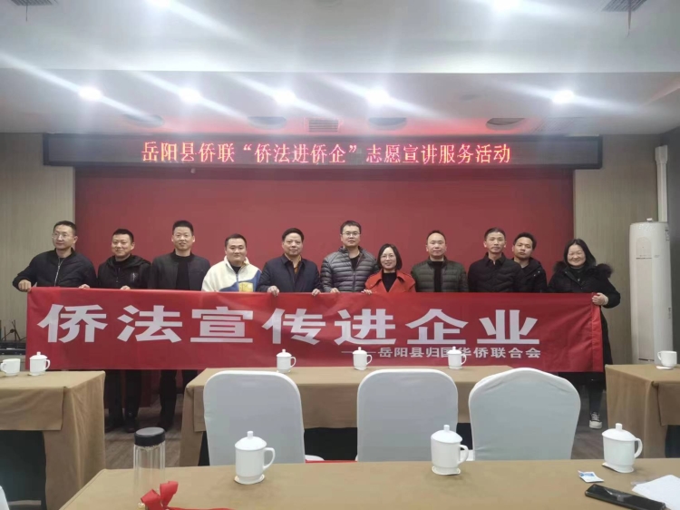 为推动侨法宣传深入人心,进一步提升侨界群众法治素养,不断擦亮岳阳县侨务工作品牌,12月5日,岳阳县侨联举办“侨法进侨企”志愿宣讲服务活动。县委统战部常务副部长游斌强、县侨联党组书记张学维、县侨联主席王勤、县委统战部侨办及县侨联全体机关干部参加。