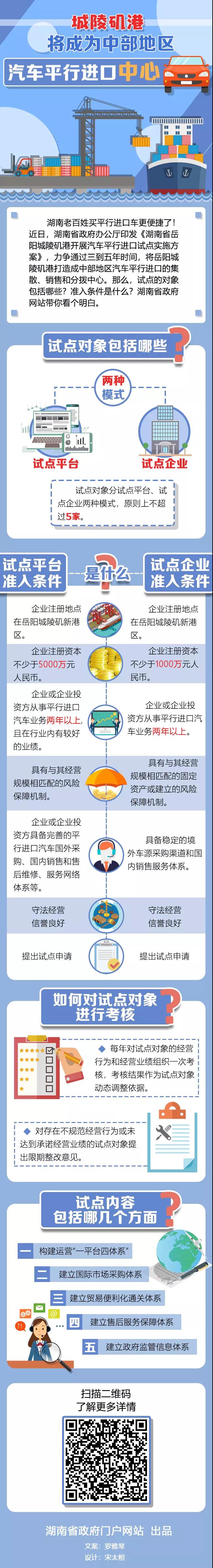 》》相关文件:湖南省人民政府办公厅关于印发《湖南省岳阳城陵矶港开展汽车平行进口试点实施方案》的通知(湘政办发〔2018〕65号)